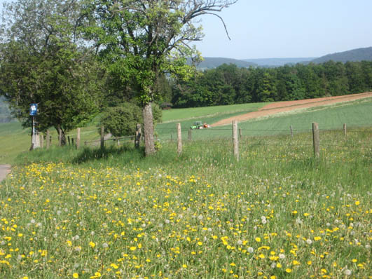 | Zur Frühlingszeit ist dies besonders schön, da hier die ganzen Wiesen und die Blüten der Bäume farbenfroh blühen. |